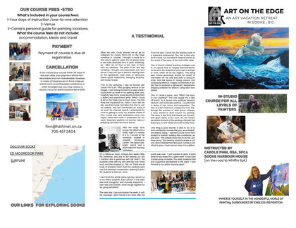 THe brochure can be downloaded from the Art on the Edge Main Page as a pdf. If there are any questions send me a message using the form below so you can talk to a real person. This truly is a very fulfilling holiday.